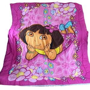 Dora the Explorer Full Size Comforter Y2K 2008 Pink Flowers 76x86 Nick Jr