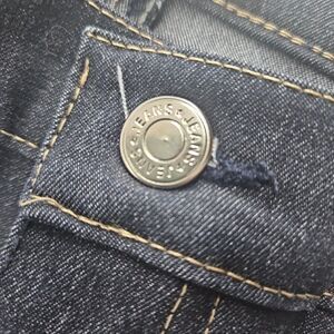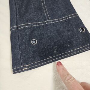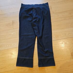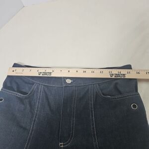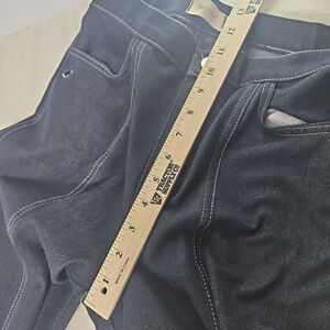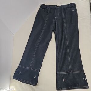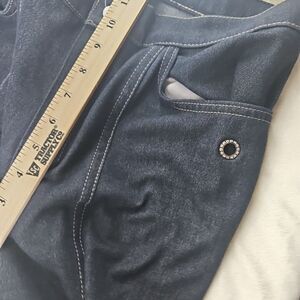 Dark Denim color, with side pockets, and rhinestone grommets on pockets and pant hem
