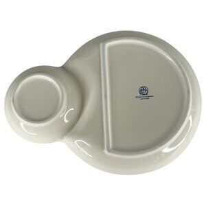 Durable ceramic plate with dipping cup section. Features a Doraemon design in blue.
