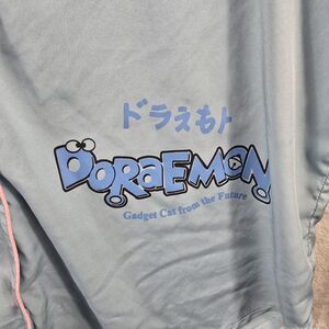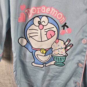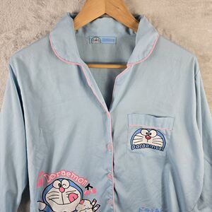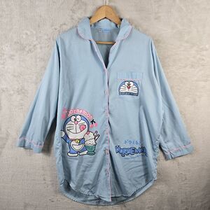 Doraemon Manga Anime Robotic Cat Shirt Sleep Wear Button Down Cool Planet Blue