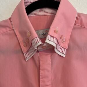 Doramafi Men’s XL Bubble Gum Pink LS Triple Collar Pearl Button Dress Shirt