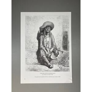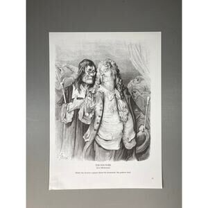 This is a book page from a reprint of Gustave Doré's whimsical illustrations of The Fables of Jean de La Fontaine. It measures 11.75 x 8.75". It is on medium-bond matte paper. Photos show the front and back of the book page. Great for framing!