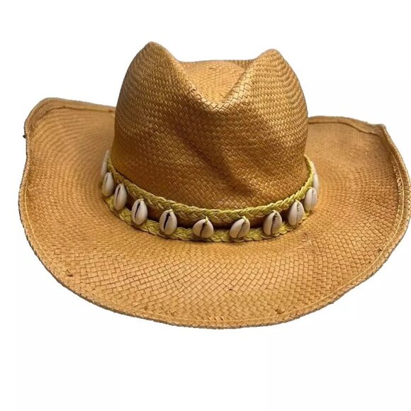 Dorfman Pacific DPC Women Hat OS Shell Band Pinch Front Straw Beach Western Fall