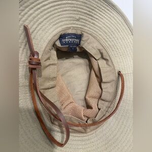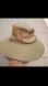 Stylish olive green vented hat with leather strap. Perfect for outdoor activities.