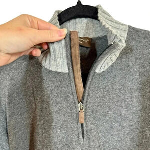 Doriani 100% Cashmere Half Zip Sweater Suede Trim Made in Italy Sz:50/Medium