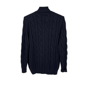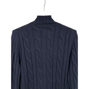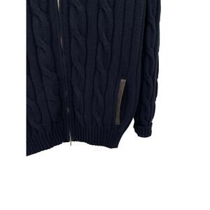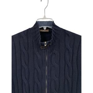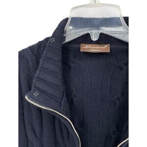 Men's Doriani Cashmere full zip cardigan sweater. Blue cable knit cashmere. There are one side of snaps on the inside of the collar so whatever was attached is missing. Made in Italy. Size 60 but measures as an XL so please check measurements for a proper fit.