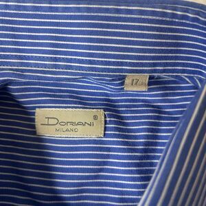 The Doriani Milano Men's Shirt in size 17 is a stylish and sophisticated addition to any man's wardrobe. This long sleeve button-up shirt features a classic blue striped pattern, adding a touch of elegance to any casual outfit. Made by the renowned brand Doriani, this shirt is sure to provide both comfort and style for any occasion.
