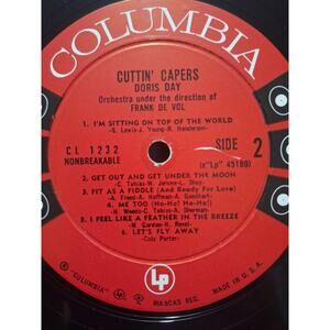 Two original Columbia six-eye mono LPs: Doris Day’s Greatest Hits (CL 1210, 1958) and Cuttin’ Capers w/ Frank De Vol (CL 1232, 1959). Classic red labels, strong gloss, clean play. Jackets show typical light ring/corner wear. Great starter pair for vintage vocal pop or Columbia six-eye collectors.