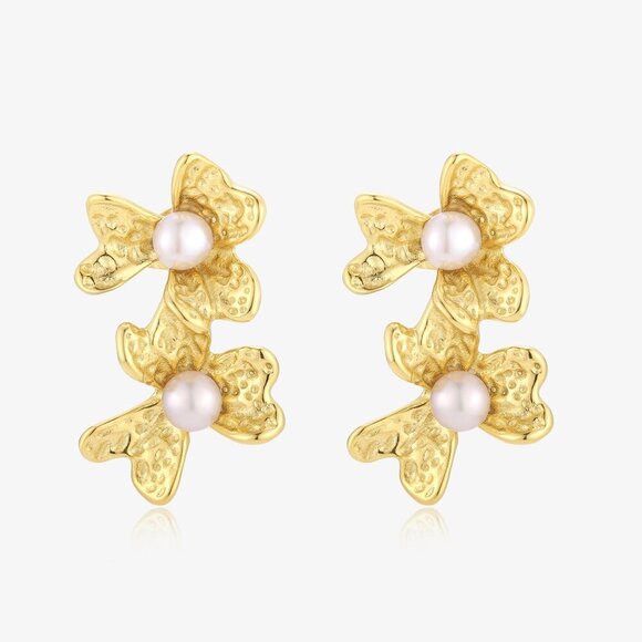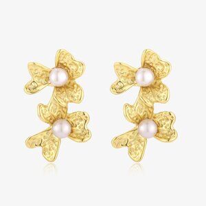 Doris Earrings Double Flower Design Fresh Water Pearl Earrings