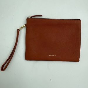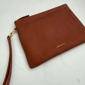 Doris and Jacky Brown Pebbled Leather Wristlet Zipper Pouch Travel Bag Wristlet