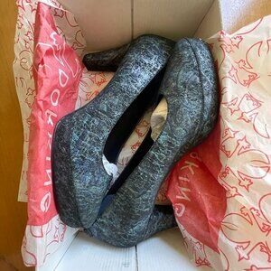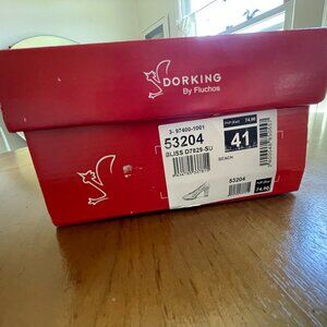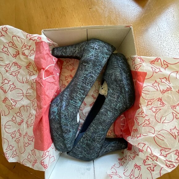 New in box, blue printed Dorking platform heel, very comfortable. Retails for $150.