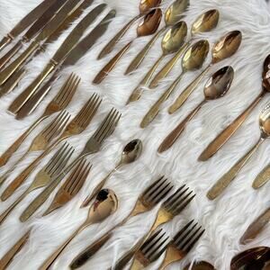 Dorling | Vintage Dirilyte Golden Autumn Symphony Goldware Dinner Flatware Lot Of 35 Silverware