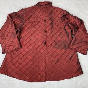 Dorman Swing Jacket Women's L Red Iridescent Diamond Textured Button Front/Back
