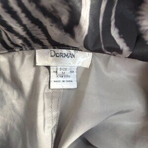 This Dorman hooded coat makes a stylish statement with its gray and black zebra print, combining eye-catching design with everyday comfort. Featuring a button front closure, long sleeves, and functional pockets, it’s perfect for layering on chilly days while adding a bold touch to any outfit.