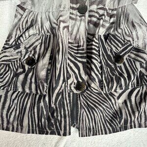 Dorman Womens Zebra Print Button Front Hooded Coat Jacket Medium Gray Pockets