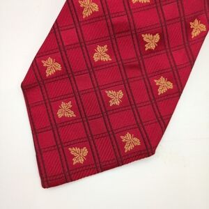 Dormeuil Paris London Made in Italy Silk Red Tie Checkered Leaf Leaves