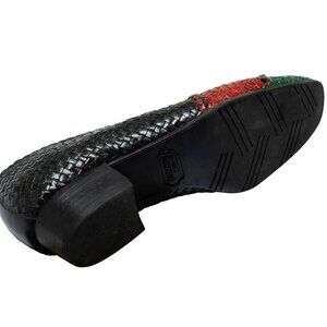 The Création Dorndorf woven leather pump represents a singular convergence of orthopedic rationale and craft-oriented materiality—epitomizing a late-20th-century German design language centered on functional elegance. Produced during a period of heightened innovation in women’s comfort footwear, this model reflects Dorndorf’s core identity: a West German label that specialized in anatomically conscious dress shoes for professional women.The “Création” designation denotes a more refined offering within Dorndorf’s range—preserving the brand’s podiatric ethos while introducing an elevated visual sensibility. Manufactured domestically during the 1960s through the 1980s and distributed throughout Western Europe, Dorndorf shoes were known for their engineered lasts, low heels, and durable leatherwork—technical foundations clearly visible in this tricolor slip-on. Structurally situated between a loafer and a pump, the shoe deploys a slip-on configuration grounded in pragmatic utility, but softened through its feminine shaping and low-heeled silhouette. The distinctive use of tricolor woven leather—forest green at the toe, burgundy across the vamp, and black through the quarters—introduces chromatic nuance without flamboyance