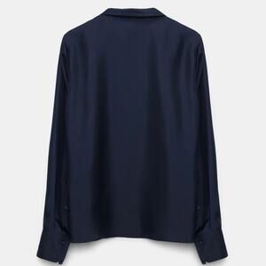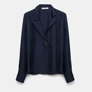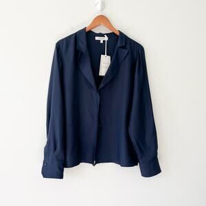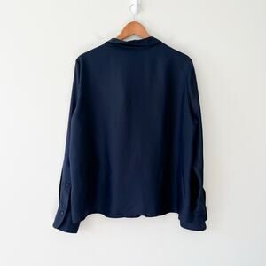 Dorothee Schumacher 100% Silk Trench It Up II Navy Button Up Blouse Size 5/XL
