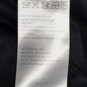 Made in Romania, this bomber-inspired jacket from Dorothee Schumacher circa 2017 is crafted in a black linen-blend shantung, and features long sleeves, a metallic striped stand collar, a hidden front snap closure, and front welt pockets.