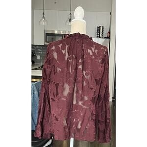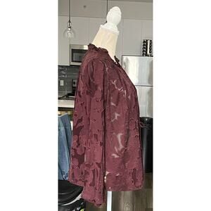 Dorothee Schumacher Burgundy Silk Lace Sheer Romance Tie Neck Blouse Top 4 $800