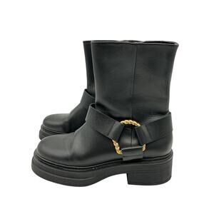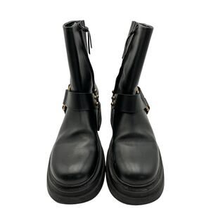 Dorothee Schumacher 'Chic Sophistication' Black Leather Combat Boots Size 12
