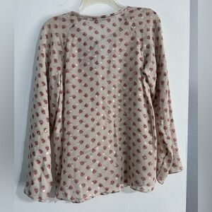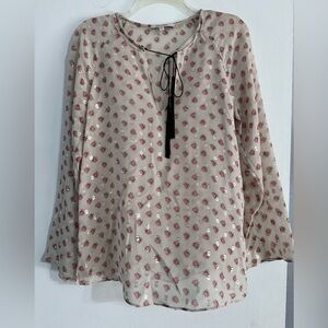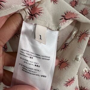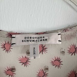 Dorothee Schumacher Silk Tassel Neck Print Blouse XS Oversized Fit Cream Pink