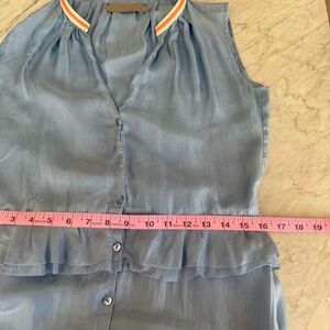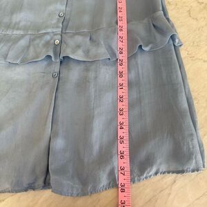 Dorothee Schumacher 100% silk satin V-neck button-down front tiered ruffles sz S