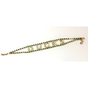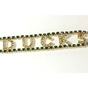 Dorothy Bauer OREGON DUCKS Crystal BRACELET Gold Plate Peridot Green Rhinestones