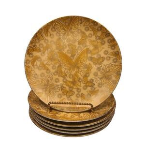 Dorothy C Thorpe VTG Porcelain Salad Plates Gold w/Butterflies- Set of (6) 7.75"