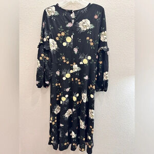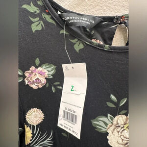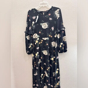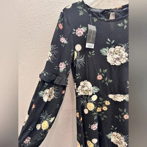 Dorothy Perkins Dress Size 8 Black Floral Long Sleeve Round Neck Lightweight New