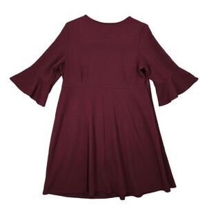 Dorothy Perkins Liverpool Sz 20 Burgundy Fit & Flare Dress, Bell Sleeves Made UK