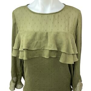 Dorothy Perkins Women's Olive Green Metallic Chiffon Ruffle Blouse Top Size 12