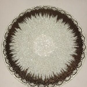 Detailed Similar to My Other Dorothy Thorpe Atomic Splash Platter Gold And Silver Raised Specs And Flecks on Glass Textured Platter 14”Vintage Dorothy Thorpe Sterling Silver on Crystal Oval Platter.