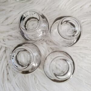 Glasses: Diameter Top: 2.25", Diameter Bottom: 1.5", Height: 2.75"