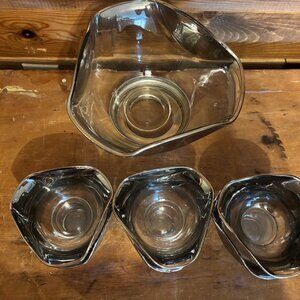 I'm thinking it would be great for chips n dip but could be used for a multitude of things. This set is in perfect condition. As you know, the umbre effect with black and silver that Dorothy Thorpe is known for is stunning. The large bowl measures 9" across and the 6 smaller bowls are 5" across. a perfect addition to your Dorothy Thorpe collection or just for display. Vintage. Will ship with care.