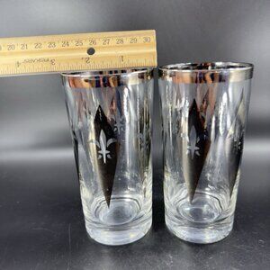 Dorothy Thorpe Silver Harlequin Diamond Fleur de Lis Glasses Highball Barware 2