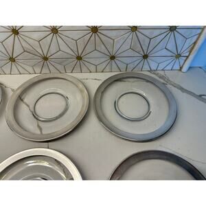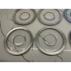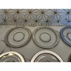 Vintage MCM plates perfect with your martini glasses for appetizers or salads. Some wear on the silver as shown in the pictures.