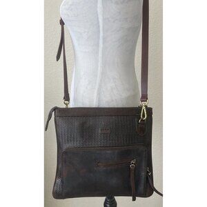 Dorsa Leather Handbag Brown Crossbody Bag Luxury Purse Brass Accent Medium.