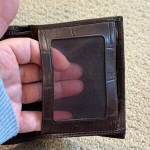 Dorsa Men's Leather Bifold Wallet Chocolate Brown Embossed Crocodile Alligator