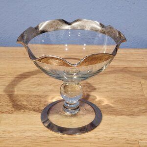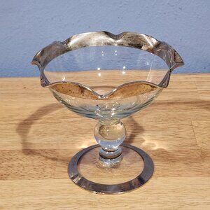 Dorthy Thorpe Compote Bowl w/ Silver Banded Footed Ball Stem 5"x 5.5"" Vintage