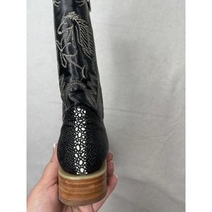 Dos De Oro Black Stingray Pointed Toe Western Boots Size 7.5 Horse embroidered