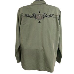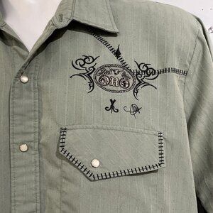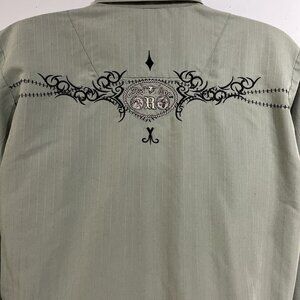 Dos De Oro Shirt Mens L Green Embroidered Snap Front Western Rodeo Rockabilly