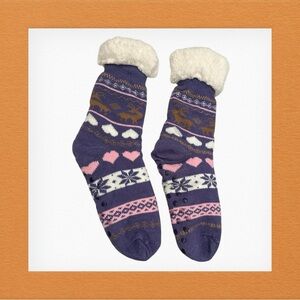 Dosoni Womens Slipper Fuzzy Socks - Reindeer Purple, US Women 5-10