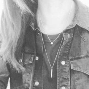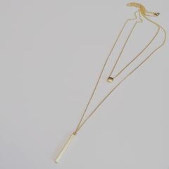 EUC. musthavemustget Dot & Bar Double Strand Necklace in Rose Gold color. Length: 17" & 23" double strand. Brass base metal, plated. Handmade in Korea. A great layering necklace - so on trend.