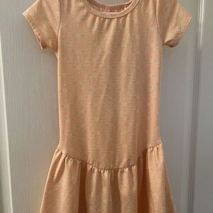 Dot Dot Smile Dragonfly Drop Waist Dress Peach Girls Size 3-4. Such a cute little dress, drop waist and short sleeves. Little key hole on the back. Allover dragonfly print. Has been worn and there are some slight pulls in the material, but nothing major - please see the pictures. A great dress with a ton of life left. Good Used Condition.