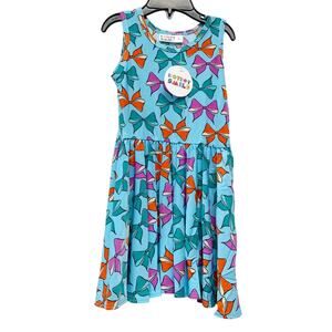 Dot Dot Smile Girls 2T Tank Dress Blue Multicolor Bow Print