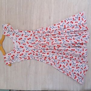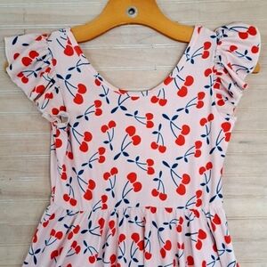 dot dot smile dress, cherry print dress, girls twirl dress, fit and flare, flutter sleeve dress, retro cherry, pinup style, playful summer dress, youth girls clothing, vintage inspired, party dress, picnic dress, skater dress