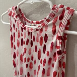 Dot Dot Smile tank dress size 2T. White background with red and pink watercolor paint brush strokes. Very good condition.