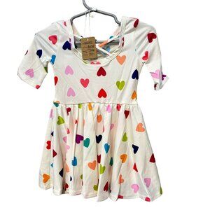 This adorable DotDotSmile dress features a charming heart print on a white background. Perfect for your little one, it combines comfort and style effortlessly.