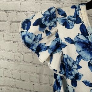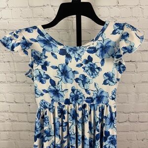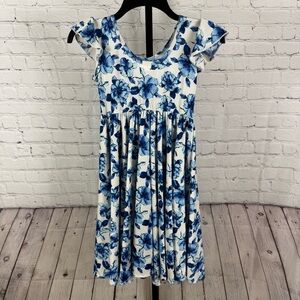 Dot Dot Smile White and Blue Floral Print Empire Style Dress Size 8/10